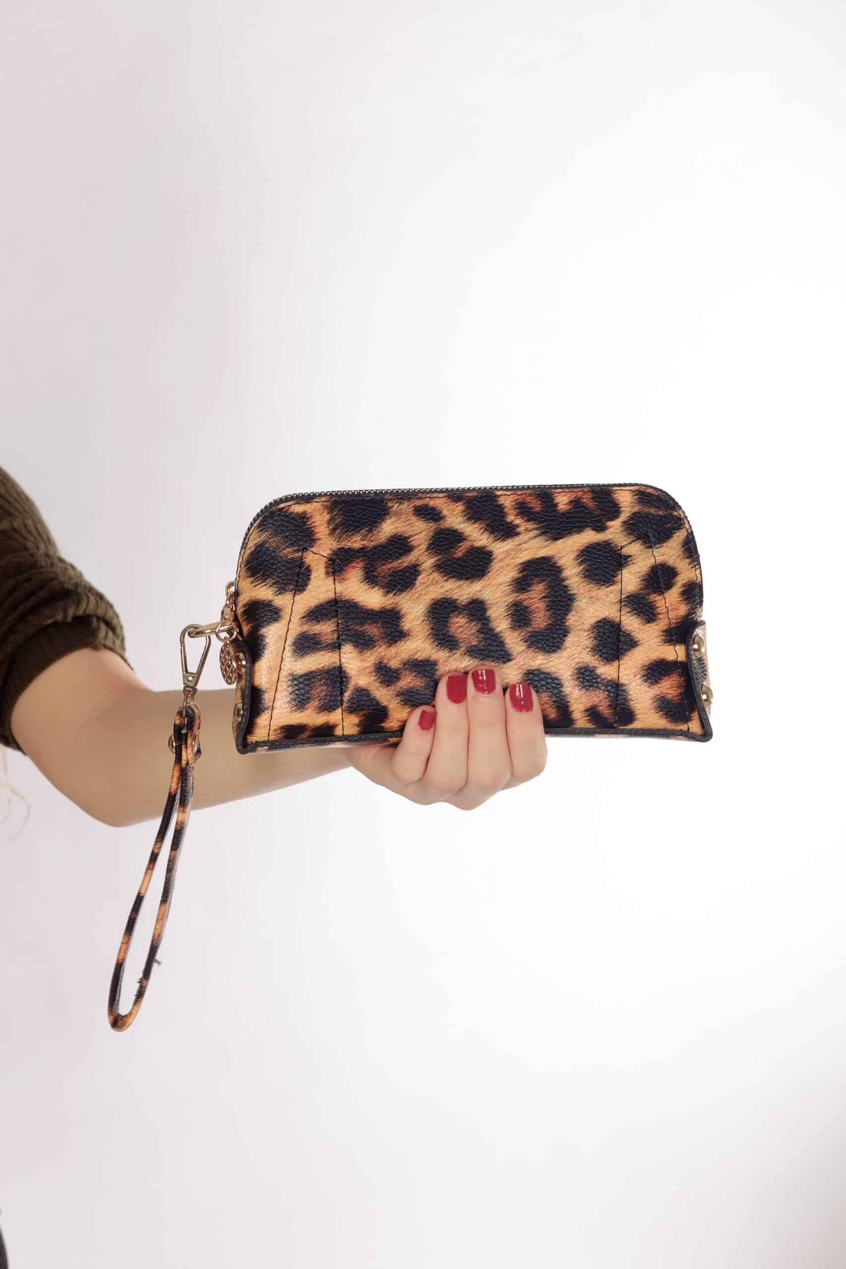 El Çantası Orta Boy Telefon Çantası Leopar Desen