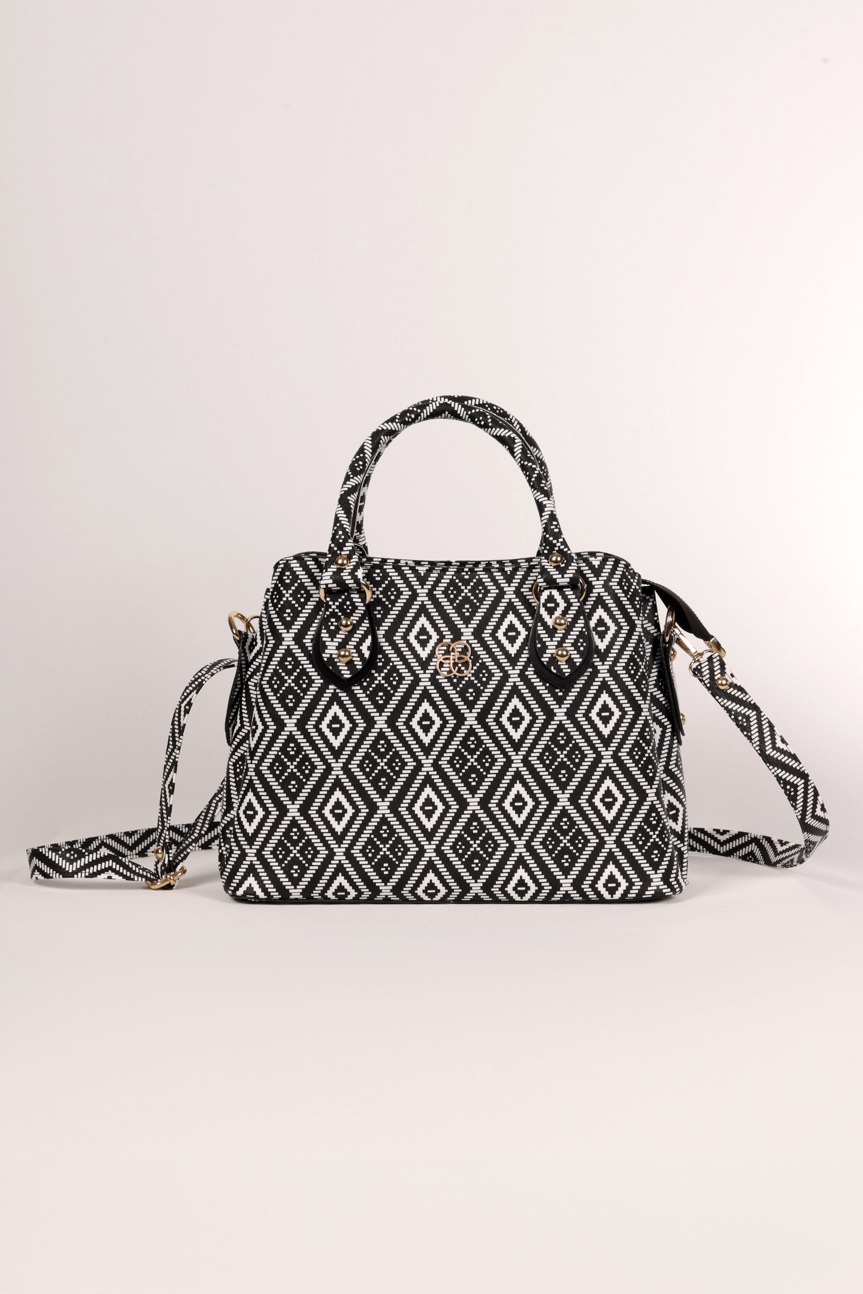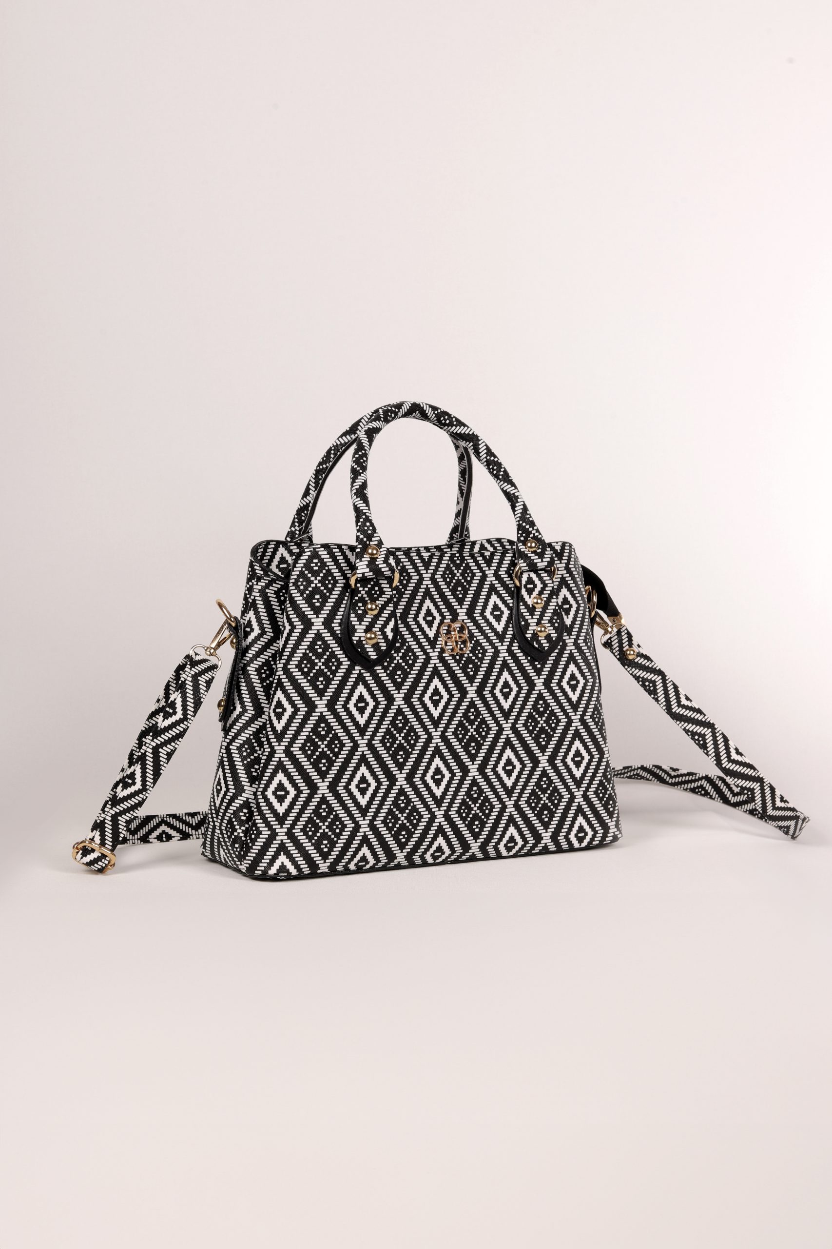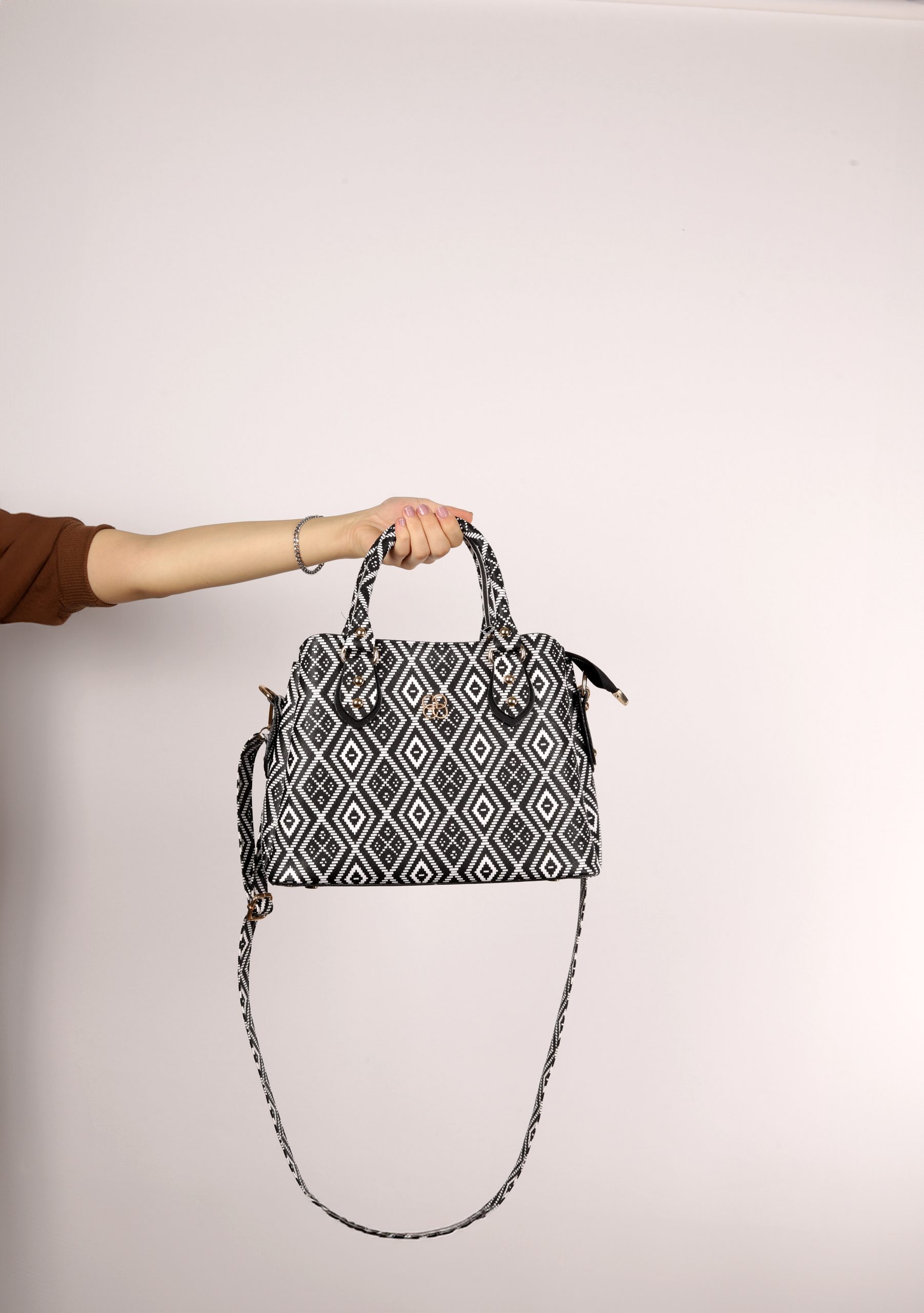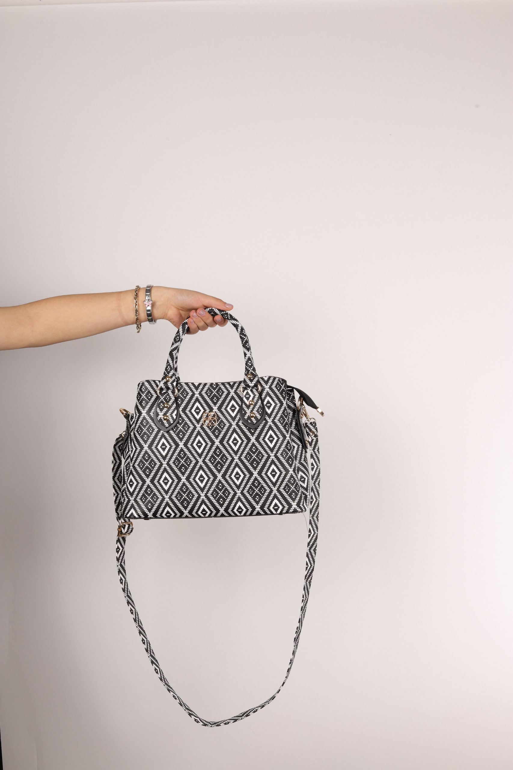 Siyah Beyaz Kilim Desenli El Çantası Seti