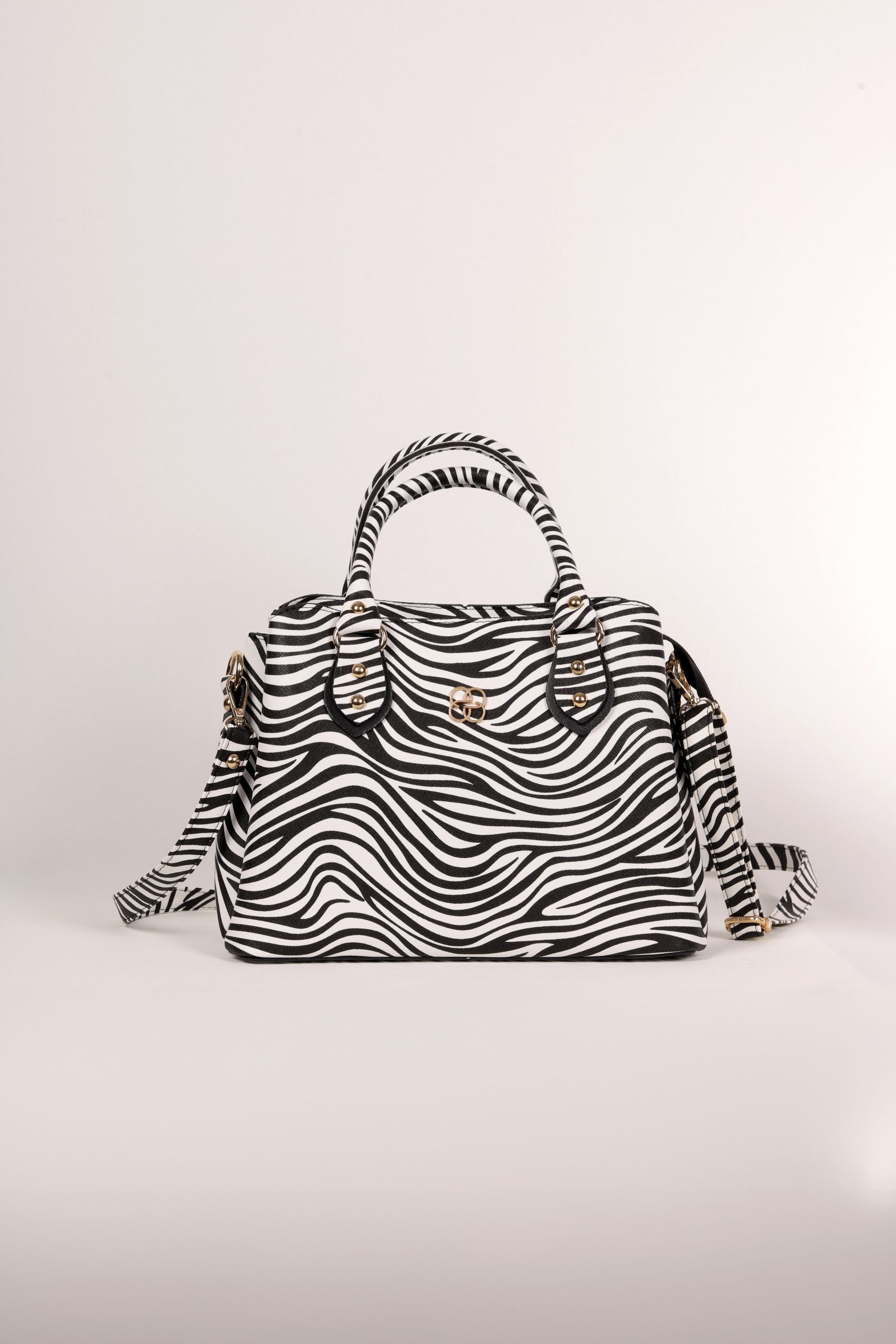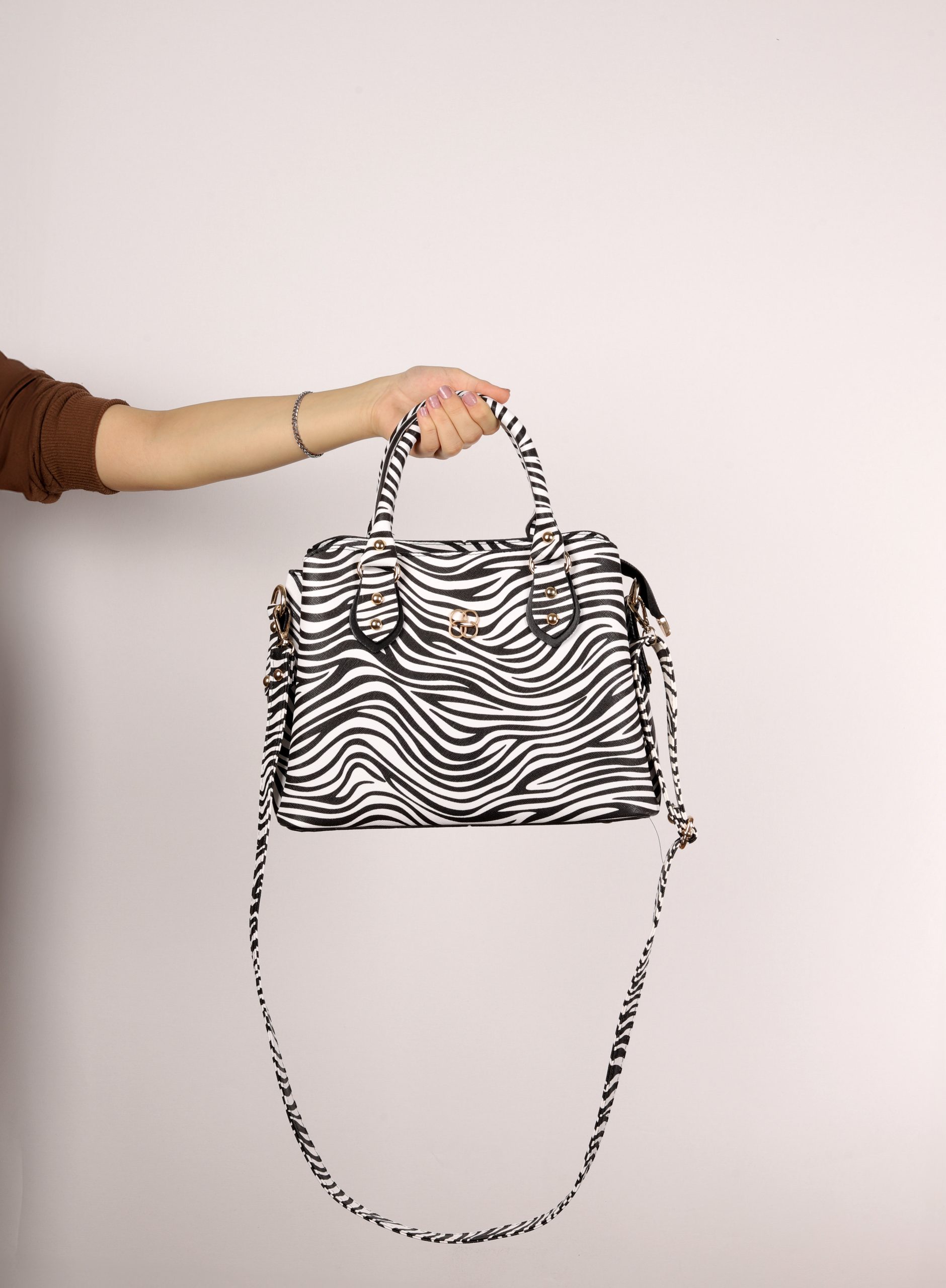 Kadın Uzun Askılı 3 Bölmeli Gold Aksesuarlı Omuz Ve El Çantası Zebra Desen